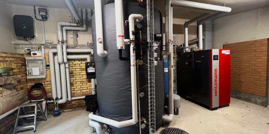 Installation neuer Technikraum mit Holzheizung